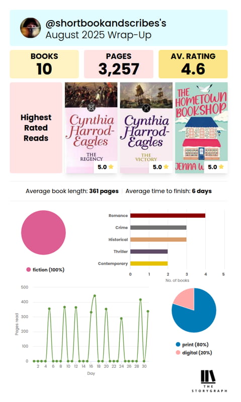 ShortBookandScribes August 2025 Reads, Book Post and Stats