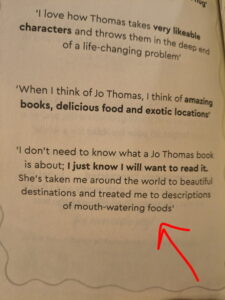 *I was thrilled to spot a quote from my review of Christmas at Hollybush Farm in the proof of Summer at the French Bakery!