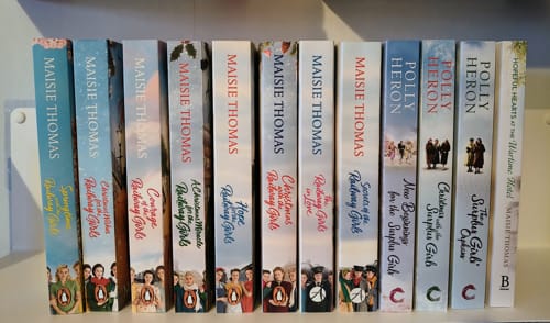 I was also very lucky in November because lovely Susanna Bavin/Maisie Thomas/Polly Heron sent me all of these which was an amazing package to open. There are books 2-9 in the Railway Girls series, books 2-4 in the Surplus Girls series (my review of book 1 is here) and book 2 in the Wartime Hotel series (my review of the first book is here). Here they all are on their newly created Susanna/Maisie/Polly shelf. Lots of captivating reading ahead for me!